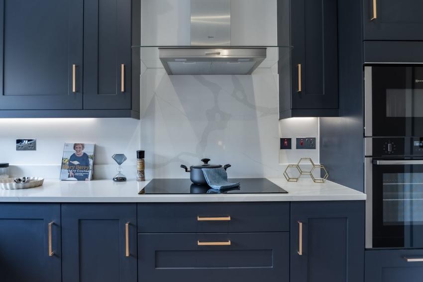 This spacious five bedroom home features an oak staircase, a dedicated study and a modern kitchen with granite worktops and Neff appliances. The ground floor includes a garden room and a double garage, while the upstairs offers four large doubles, two en-suites, and luxury Porcelanosa tiling throughout the bathrooms.
