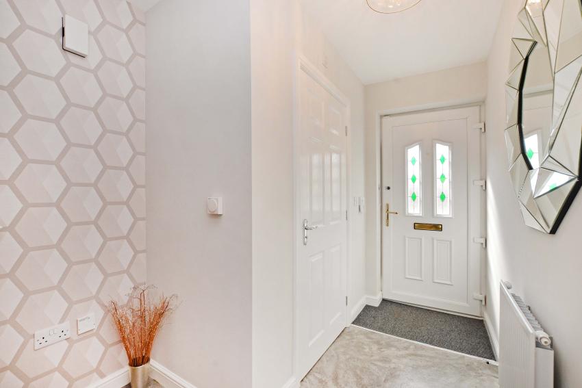• The entrance hall includes a cloakroom/WC and leads on to a front-facing kitchen/diner. At the back of the house is a spacious, family-oriented lounge with french doors leading to the rear garden.
