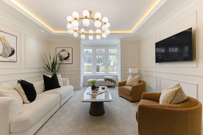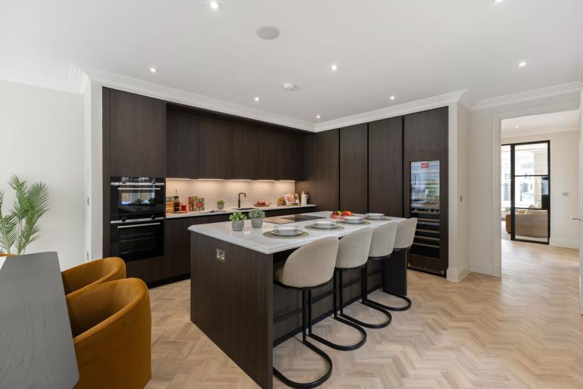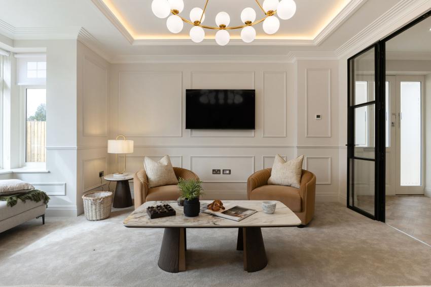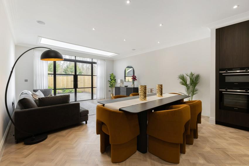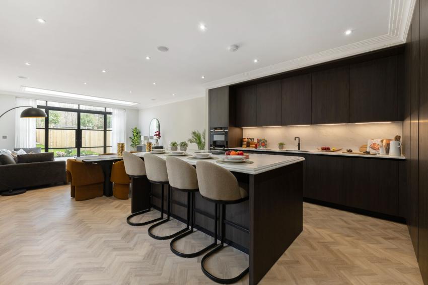 Arranged over three well-planned floors, each home features light-filled open-plan kitchen and living areas with bespoke Krieder kitchens, Quartz Calacatta worktops, Siemens appliances, Quooker taps, and wine chillers. Crittal-style doors and roof lights create a seamless connection to landscaped private gardens, while a separate lounge offers flexible additional living space.