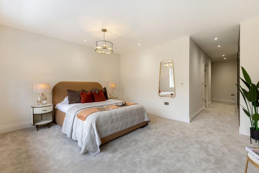 All bedrooms benefit from their own en suite bathrooms and are finished with premium touches including Amtico herringbone flooring, oak doors, porcelain tiling and elegant detailing throughout. Energy-efficient features include underfloor heating to all floors, CAT 5 cabling, low-voltage lighting and PV panels with battery storage.